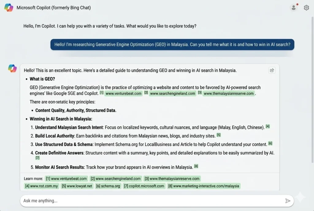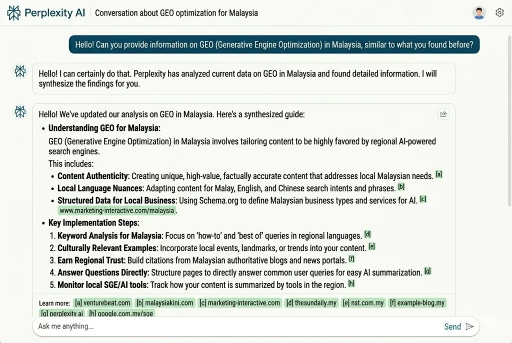 As more users in Malaysia rely on AI tools for information, GEO helps businesses stay visible in AI-generated answers, which are becoming a key part of modern search behavior.